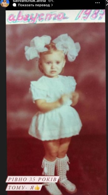 Саліванчук показала, який вигляд мала 35 років тому, у два рочки. На фото маленька Анна стоїть сукенці та з бантиками.