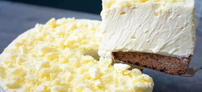 Зверху посипаємо дрібними шматочками шоколаду білого або молочного та відправляємо в холодильник на ніч, щоб крем-суфле добре застиг.