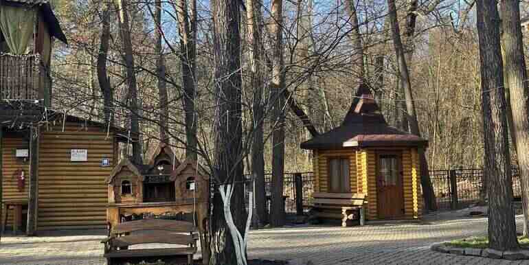 Я вела її територією готелю. Тут просторо і гарно. На березі озера виднівся дерев’яний будиночок лазні, навколо – котеджі, зроблені з любов’ю. Олена Григорівна будувала їх для гостей, але останні роки майже нікого не приймала.