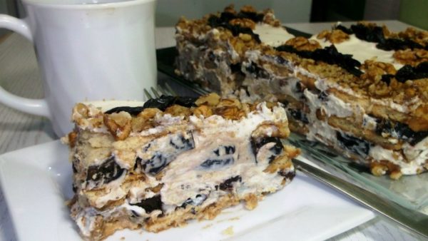 Вишуканий торт без випічки з чорносливом і горіхами